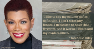 As mentioned, racial issues take up approximately 35-40% of Riley’s column. “Yet a reader still asked, ‘Why play the race card?'” she remembered. “I replied, ‘Why does that bother you?’ He had no answer to that.” Rochelle noted that she wasn’t devoting 100% of her columns to that topic, and that 35-40% by one writer is a tiny portion of the Free Press ‘ entire content.